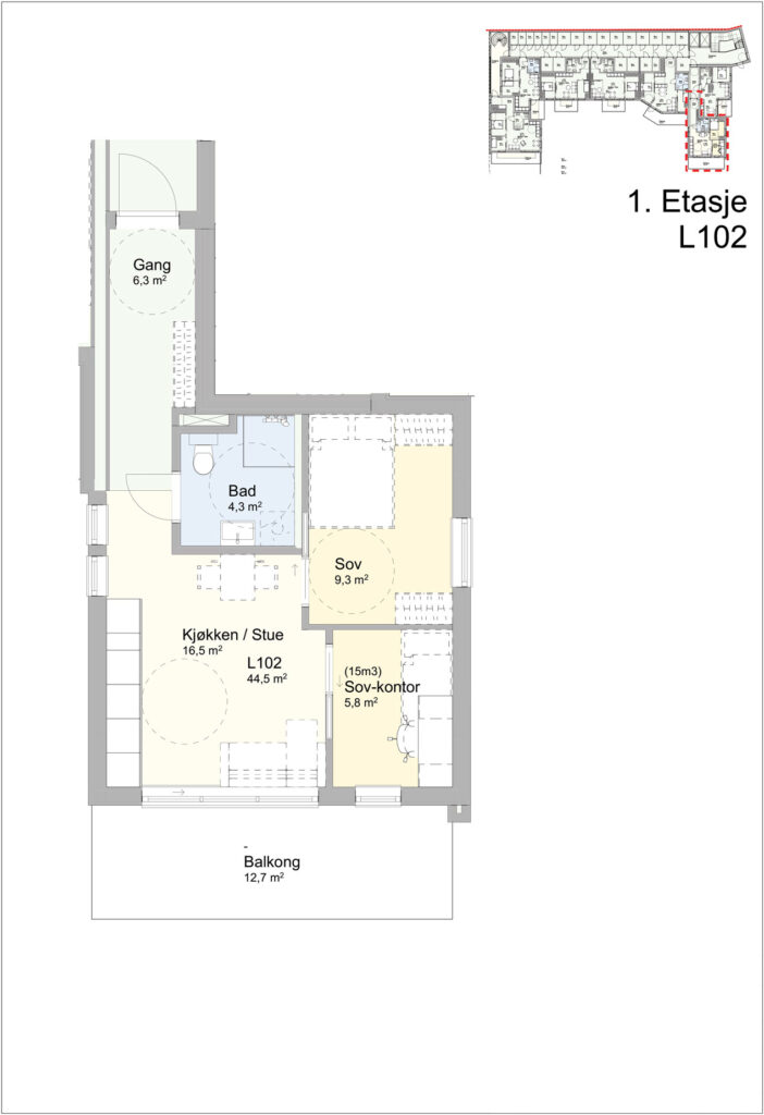 Her kan du studera dei ulike leilegheitene og finne den som passar best for deg.